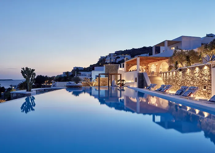 El Katikies Mykonos - The Leading Hotels Of The World Agios Ioannis Diakoftis se encuentra a unos 200 metros de la Iglesia de San Giovanni y ofrece una terraza con zona de estar, ducha y piscina. Este impresionante hotel de 5 estrellas, que dispone de una piscina desbordante, está justo al lado de Agios Ioannis Beach.